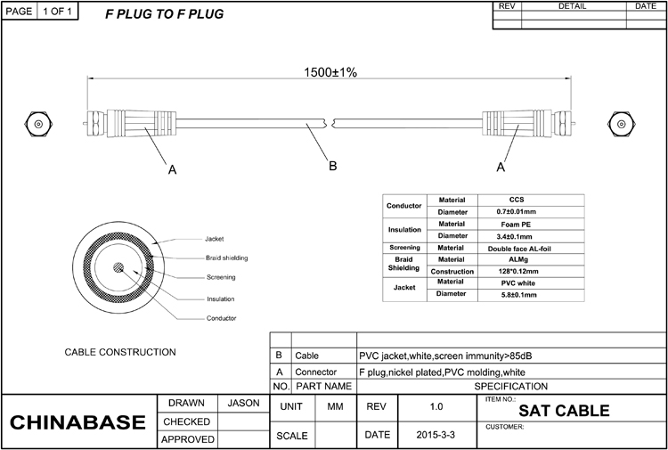 F Plug TV Coaxial Cable.